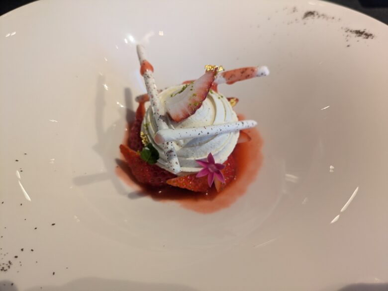 デザートは、上に砂糖を固めたものが乗っていて、カリッとしていて新鮮で美味しかったです。