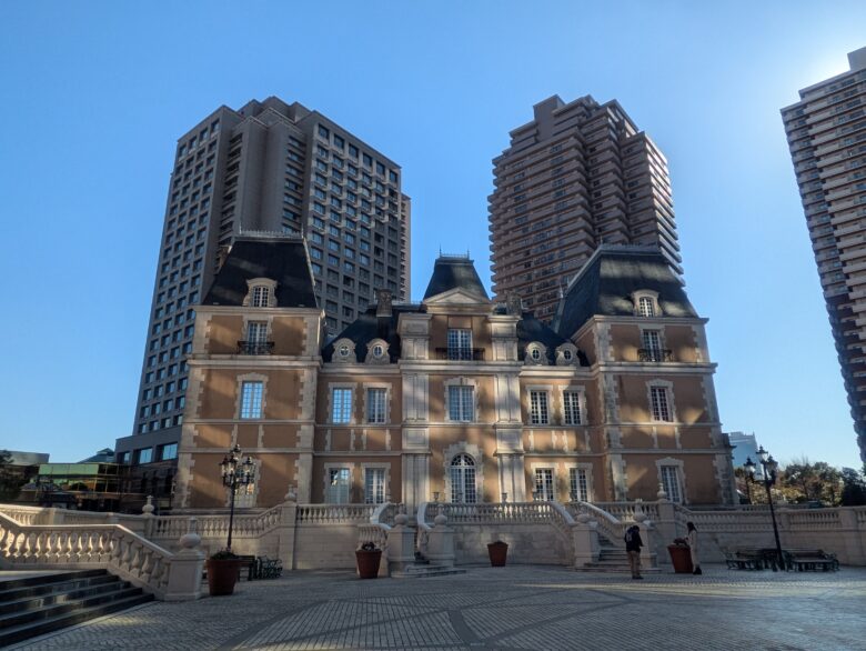 ロブションの建物の奥にはタワーマンションが建っており、タワマンをバックに堂々と立つ姿は圧巻です。