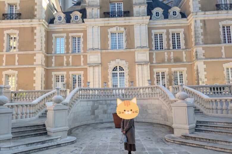建物全体がロブションの空間となっており、窓枠や柱の白い装飾、建物に続く階段などもおしゃれさを引き立てています。