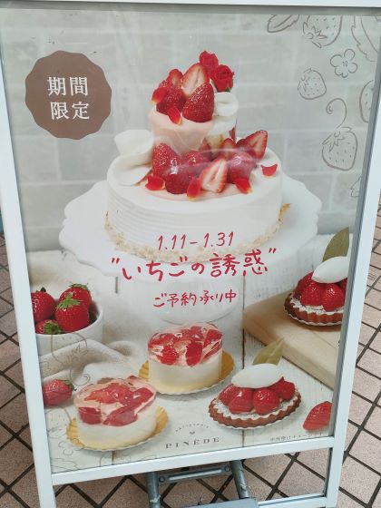 ピネード都筑ふれあいの丘店では、季節のフルーツやクリームをふんだんに使ったケーキが販売されています。
