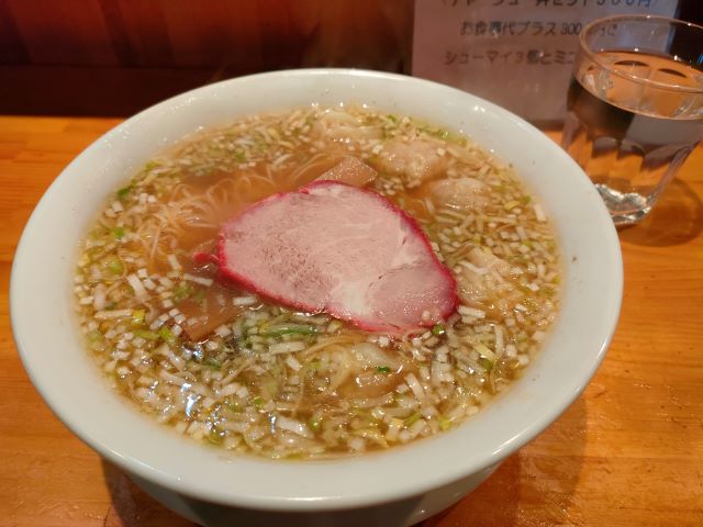 さらにこのワンタン麺のすごいところは、チャーシューとメンマが乗っていて、しかも長ネギがたっぷり入ってところです。